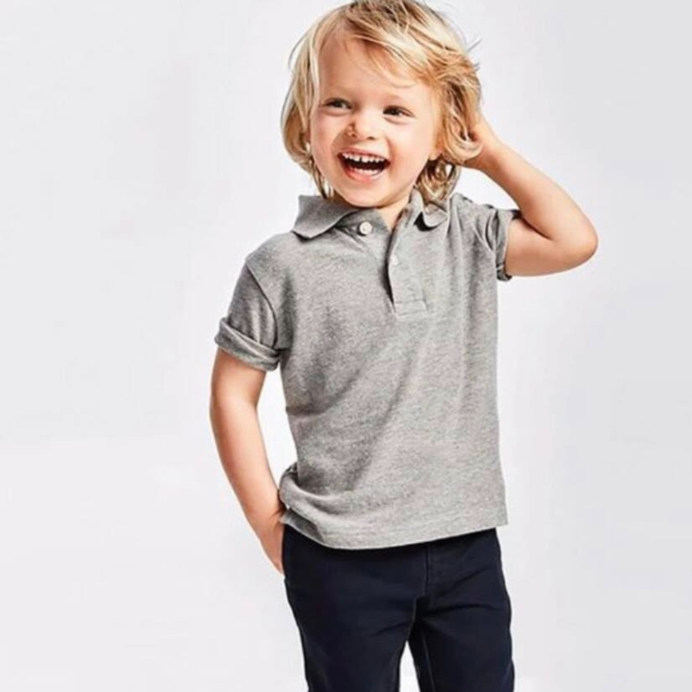 Our Polo shirts are ideal for school or playdates, available in grey and dark blue. Perfect for kids aged 1-7 years.