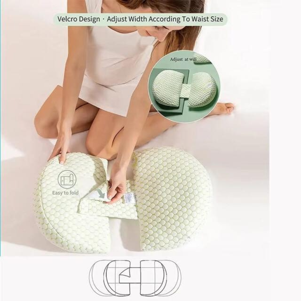 It help ease pressure on your hips and back, support your bump, and offer comfort well beyond the third trimester.