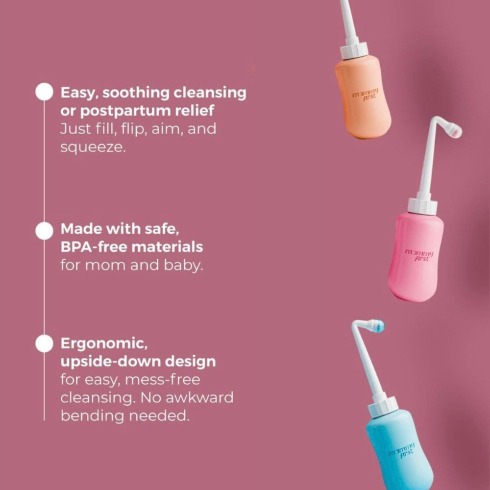 Gently cleanse and soothe the perineal area after childbirth with this easy-to-use peri bottle. Designed for comfort and hygiene, it delivers a controlled cleansing stream to relieve post-birth discomfort. With a generous 500 ml capacity, ergonomic upside-down use, and a collapsible spout, it is discreet, reusable, and ideal for daily postpartum care. Includes a wash bottle, spout, and waterproof storage bag.